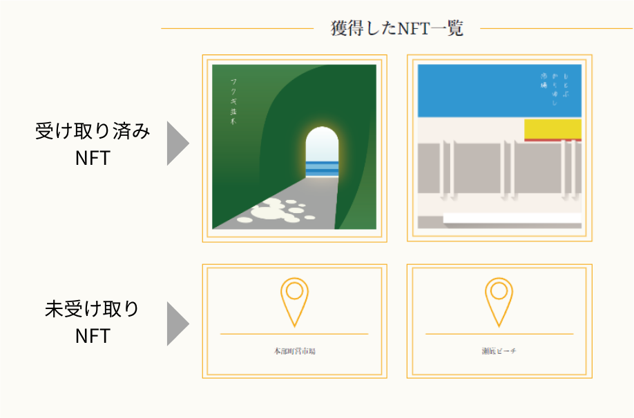 本事業の対象スポットである7つの観光スポットを訪問した際に、利用者は観光スポットと対応したNFT配布用カードを受け取ることができます。