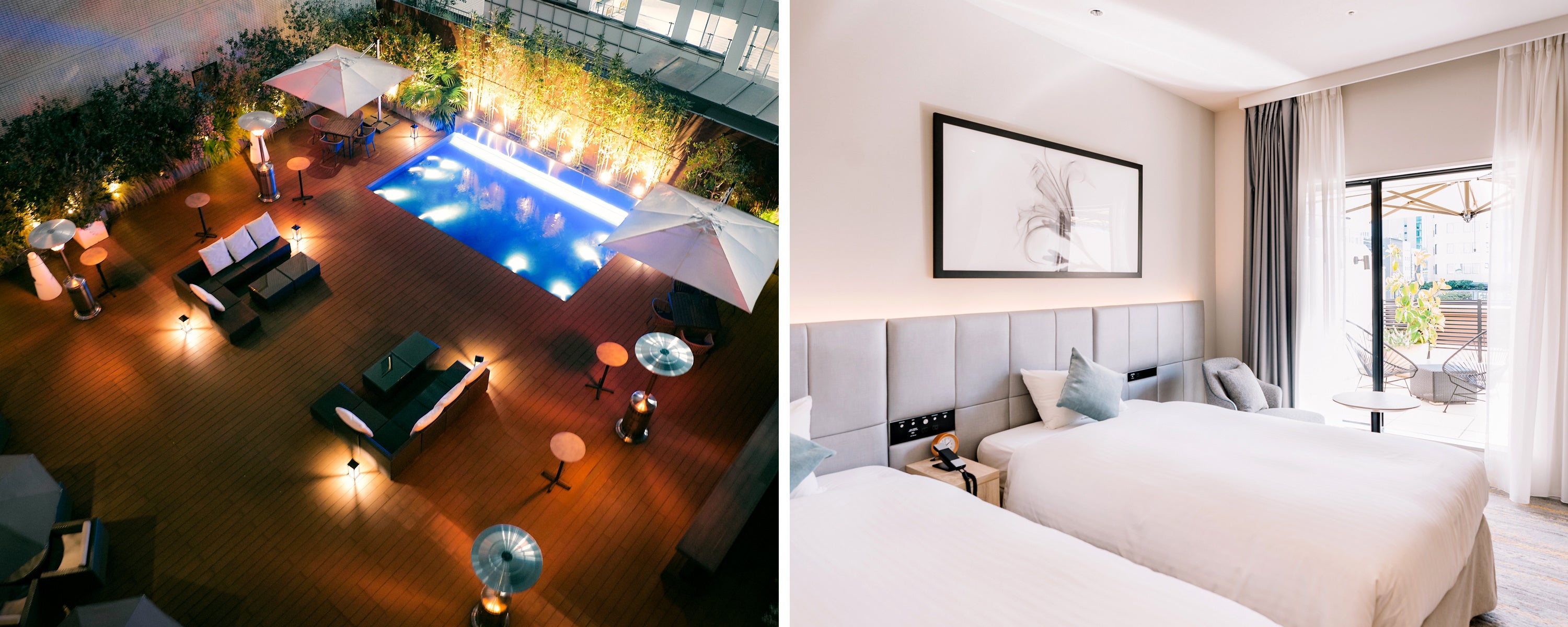 JR博多駅筑紫口から徒歩1分、福岡空港から地下鉄で5分、さらに地下鉄博多駅に直結。ナチュラルな素材感がアクセントとなる客室や宿泊ゲスト専用のエグゼクティブガーデンやジムなどを完備し、都会にいることをしばし忘れさせ、旅の活力を生み出します。