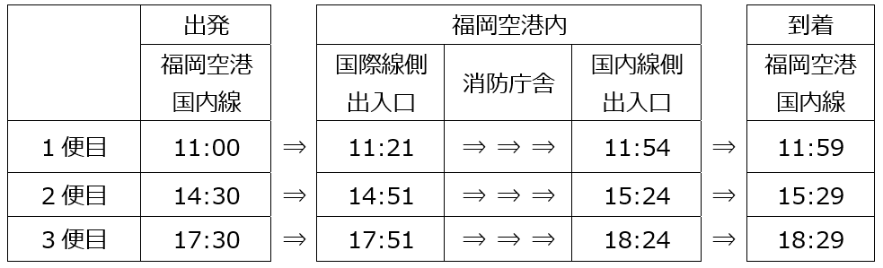 →国際線側出入口(セキュリティ検査)→福岡空港内→消防庁舎→国内線側出入口