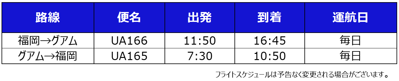 ユナイテッド航空は福岡からグアムへ毎日直行便を運航しています。