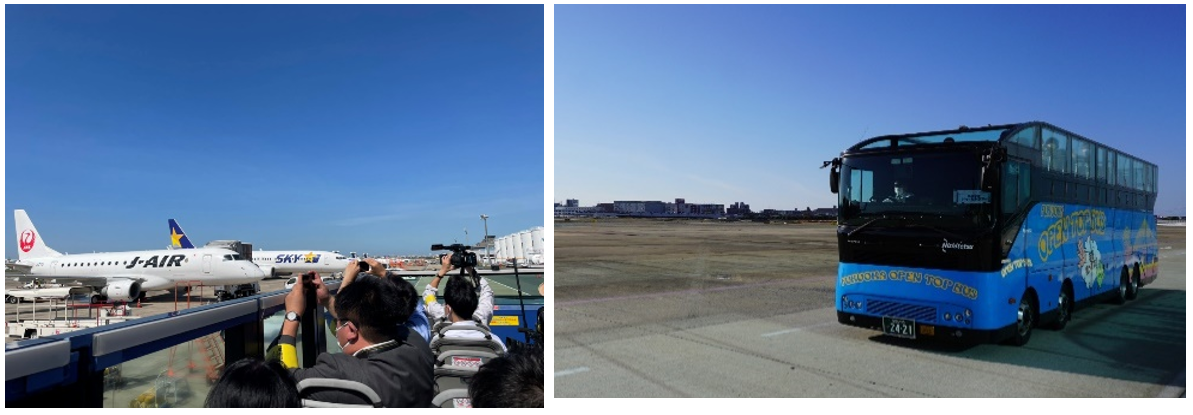 「福岡空港ビューんとツアー」は、福岡空港内の普段は立ち入ることができないエリアをオープントップバスで走行する非日常かつアトラクションの要素が高い新たな観光コンテンツです。2021年11月からスタートし、これまで多くの皆さまにご好評をいただいております。