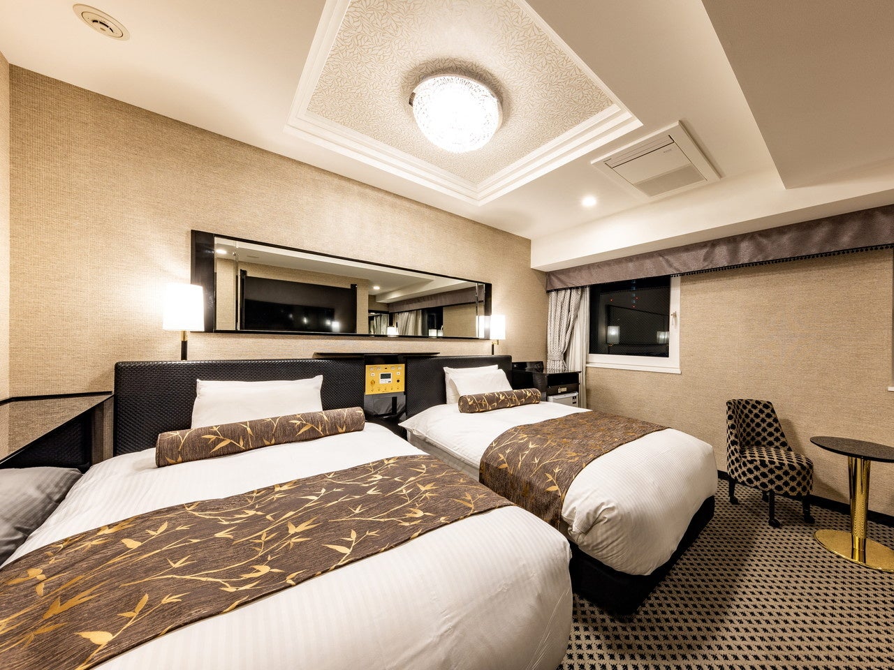 全182室(全室禁煙) ・ スタンダードルーム 168室(1,400mm幅 / 1ベッド) ・ トレインビュールーム 12室(1,400mm幅 / 1ベッド) ・ デラックスツインルーム 2室(1,200mm幅 / 2ベッド) |