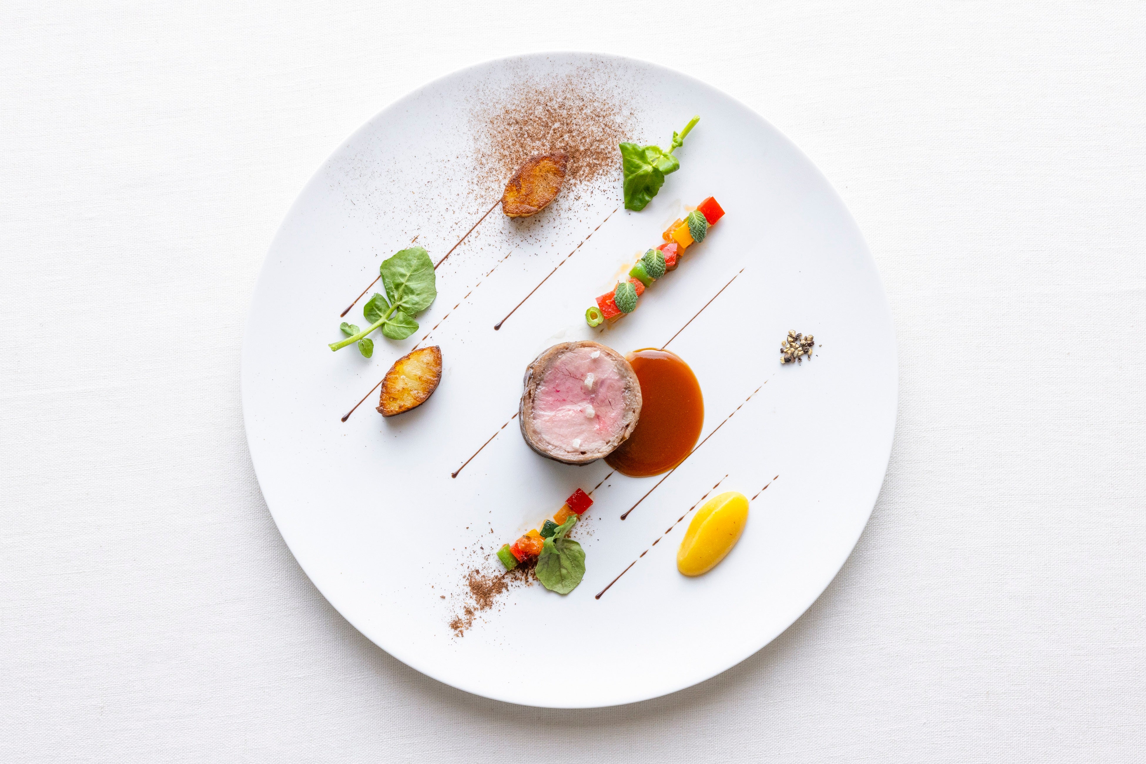羊肉はラムやホゲット、マトンなどバリエーションが豊富で、多彩な味わいが楽しめる魅力があります。ブレストンコート ユカワタン(以下ユカワタン)ではこの春、ラムとマトンの中間にあたるホゲットを使った「羊のオートクチュール」を提供します。ホゲットは、ラムより旨味があり、マトンよりやわらかい肉質です。羊のオートクチュールでは、背肉や肩肉、ロース、ももなど、羊のさまざまな部位をファルス(詰め物)にし、骨や筋からとった出汁(ジュダニョー)をソースにしています。羊の美味しさを存分に楽しめるシェフ渾身のひと皿です。