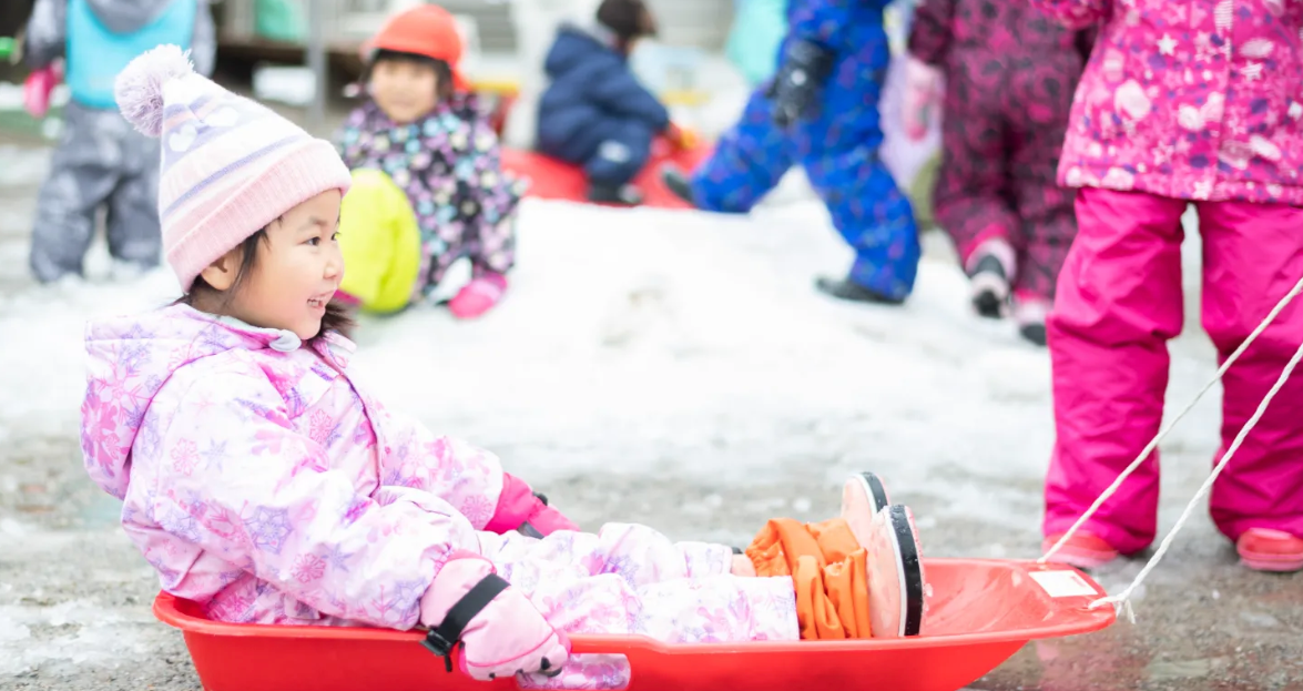 首都圏からは新幹線で2時間、飛行機で1時間とアクセスも良好。晴れの日も、雪の日も、毎日園庭に飛び出します。また、保育室内ではモンテッソーリの教具を使って、色や形の面白さを学びます。工夫とチャレンジの繰り返しの中で遊びを生み出し、その想像力は無限に広がっていきます。