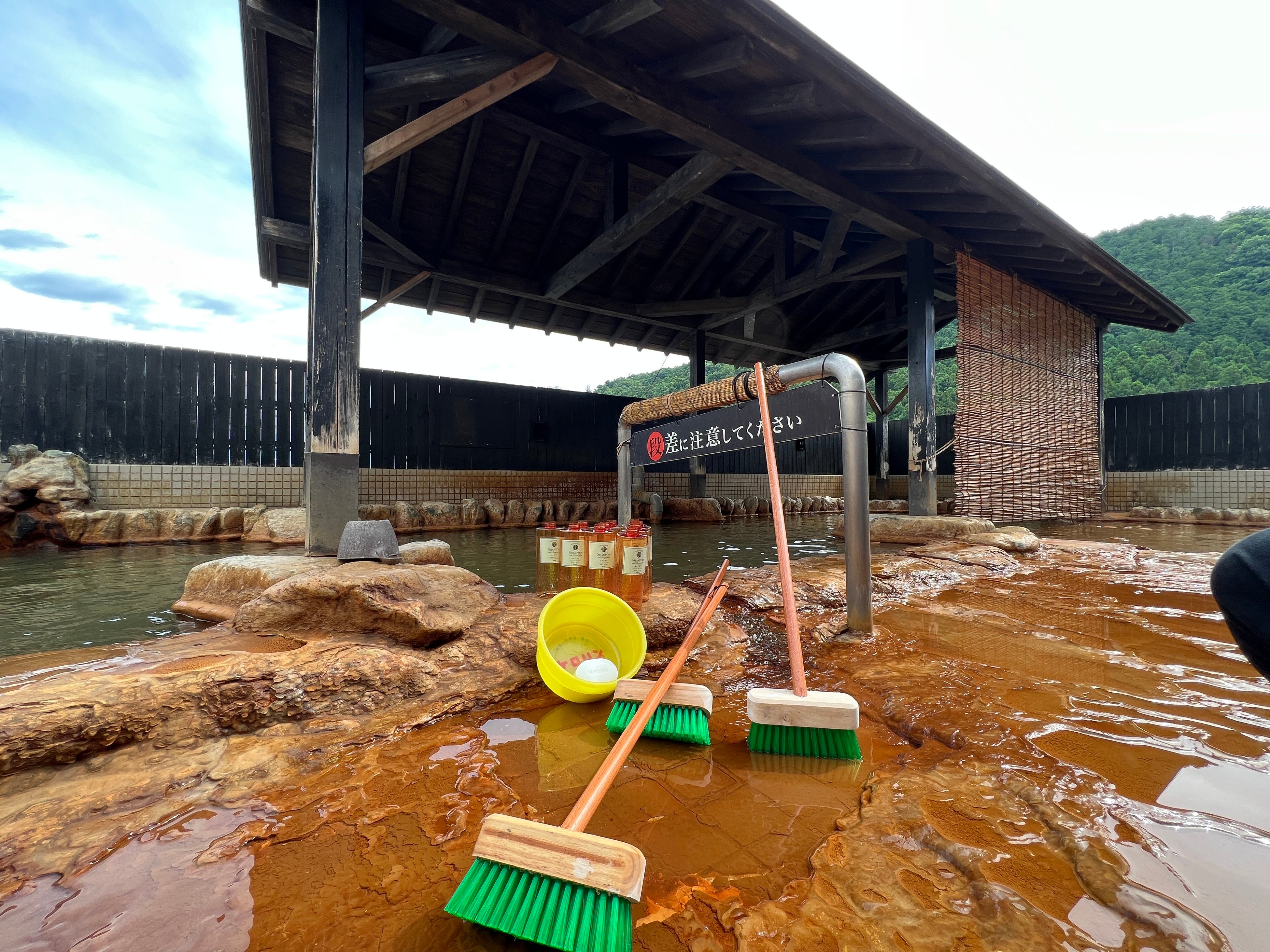 地下750メートルの古生層から湧出する塩分濃度の高い天然温泉が自慢の日帰り温泉。その成分の濃さを証明するように浴槽の周辺には温泉成分が長年かけて堆積した“千枚田”のような結晶ができるほど。食事処「寝かせ玄米®と糀料理 俵や」では、「ヤマキ醸造」や「結わえる」とコラボし、糀・発酵をテーマに健康で美味しい食事をご提案しています。