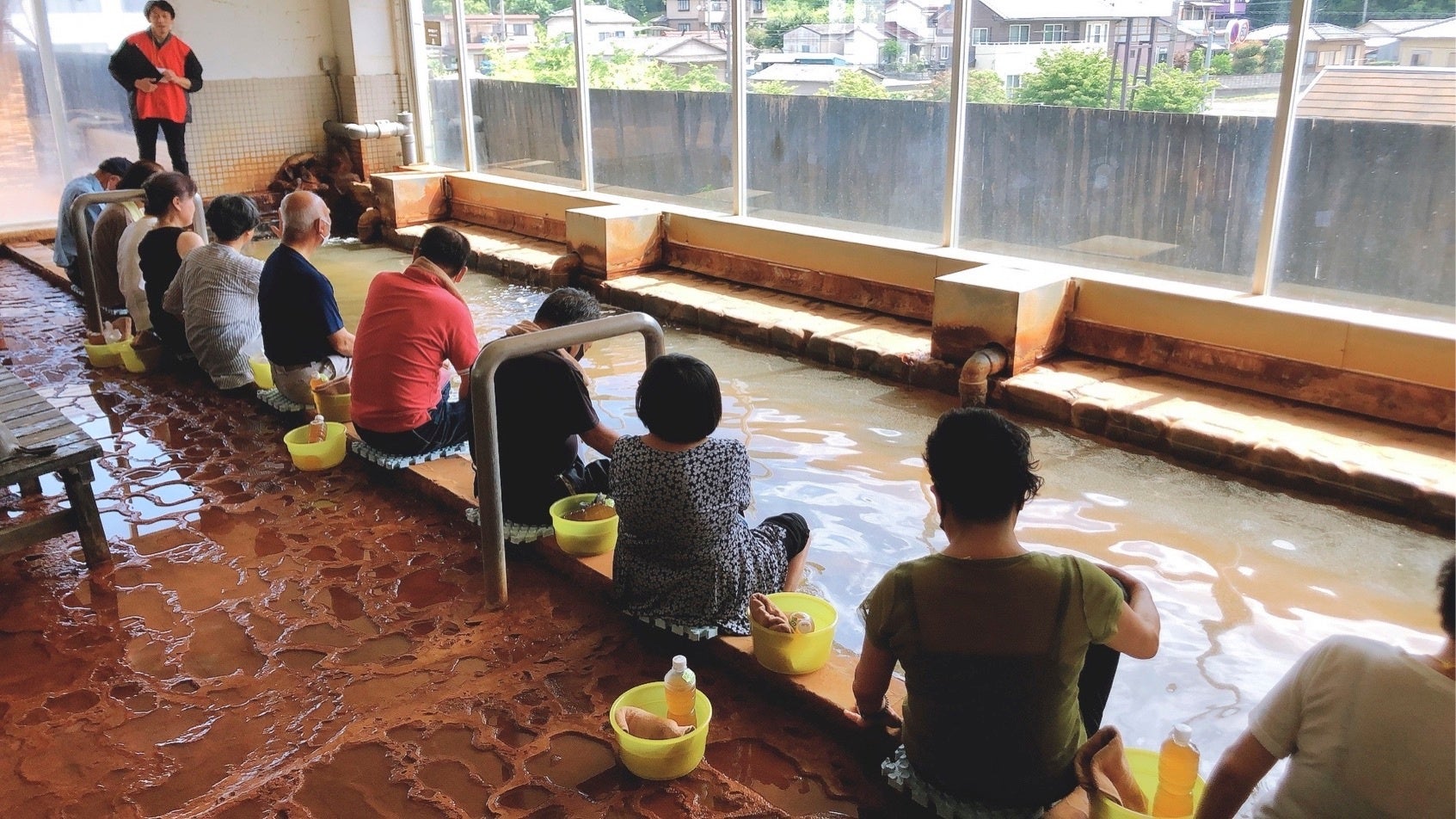 足湯、お風呂場でのゲーム、美味しいランチで交流を深めましょう。