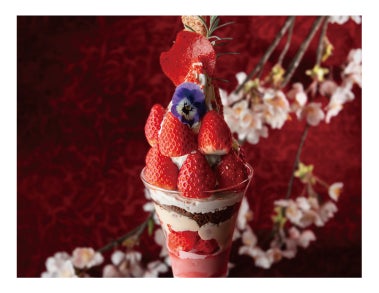 ラインアップには、贅沢気分を満喫できる旬のいちごを使った「いちごと桜のパフェ」と、軽やかな食感から“雲の上のスイーツ”と評される「いちごのパヴロヴァ」をご用意いたしました。まさに「いちごづくし」という言葉がぴったりなほどの満足感を味わえるパフェと、真っ白なメレンゲと真っ赤ないちごが見た目にも美しいパヴロヴァ。素材本来の味を存分に活かした2種類のいちごのスイーツをご堪能ください。