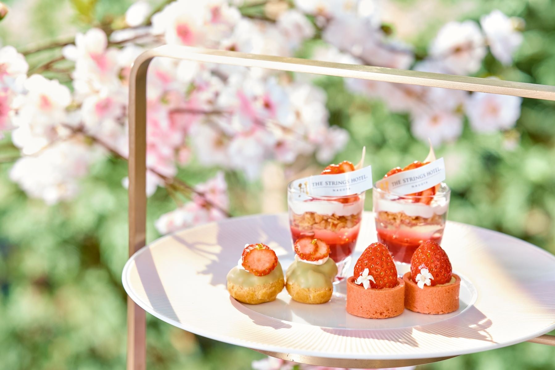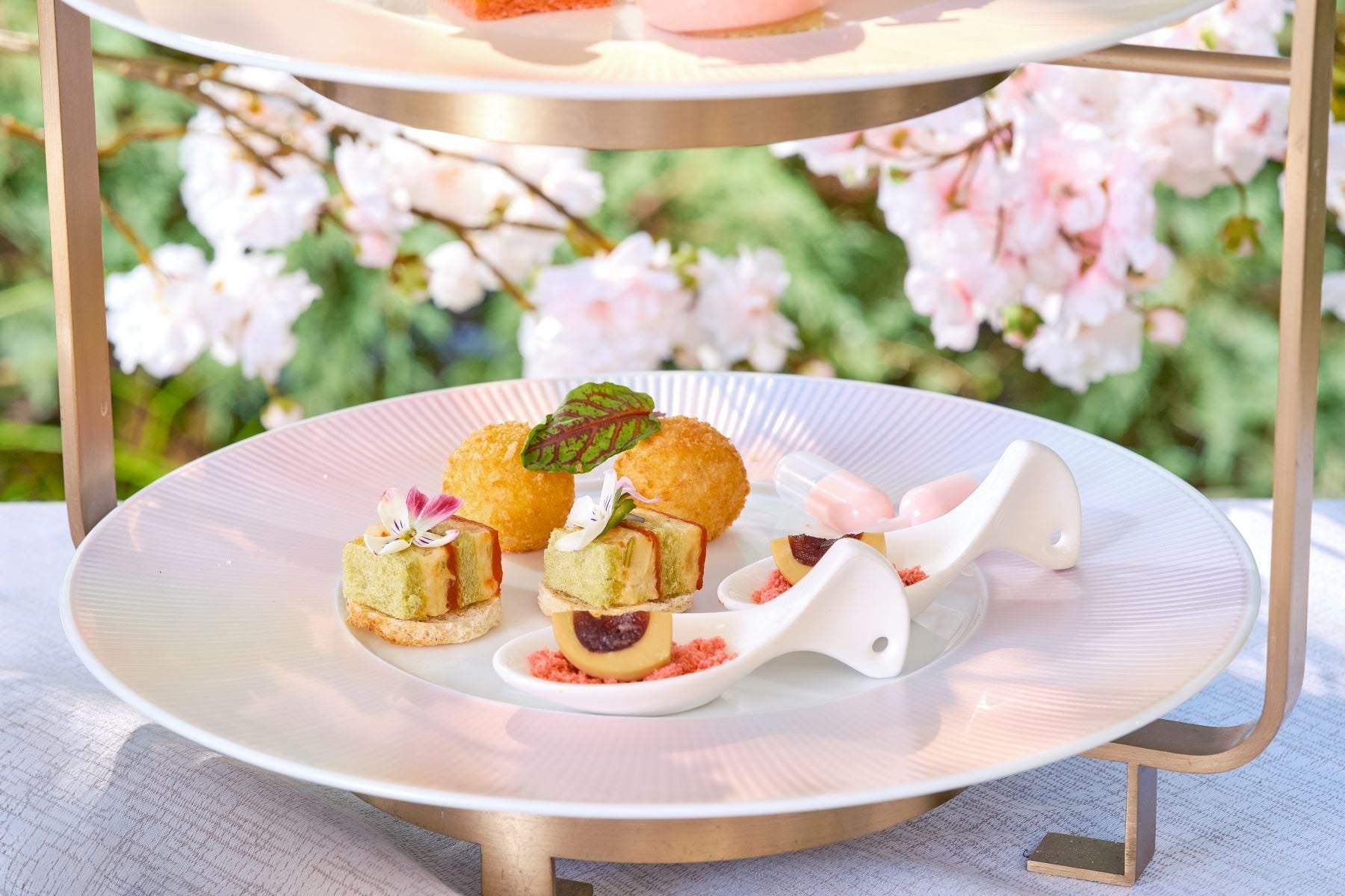 今回のグラマシーアフタヌーンティーは、旬の「いちご」、甘く薫る「桜」、ナッツの女王「ピスタチオ」が織りなすお花見気分を味わえるスイーツをご用意。桜クリームとフレッシュいちごで仕上げた見た目も華やかな「桜といちごのヴェリーヌ」、淡いグラデーションが美しい「イタリア産ピスタチオとベルガモットのムース」、桜の風味とヘーゼルナッツの食感を楽しめる「SAKURAオペラ」、甘い香りのスパイスが効いたムースなど、お花見気分を味わえるスイーツ6種類と、特製セイボリーには、ズワイ蟹とスピナッチブレッドのサンドイッチやジャーマンポテトのクロケット&さくらクリーム、新玉葱とビーツのキッシュなど6種類をご堪能いただけます。