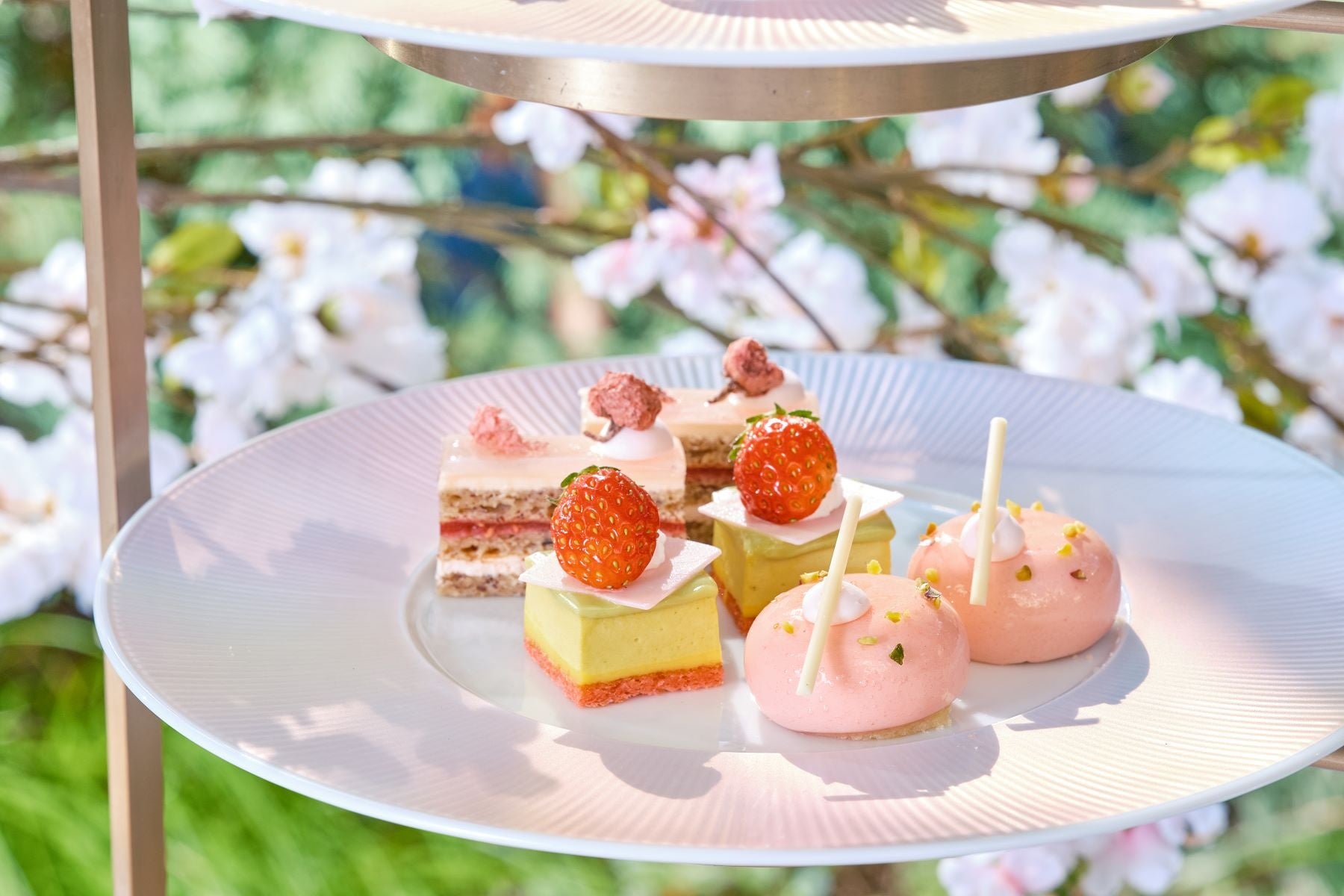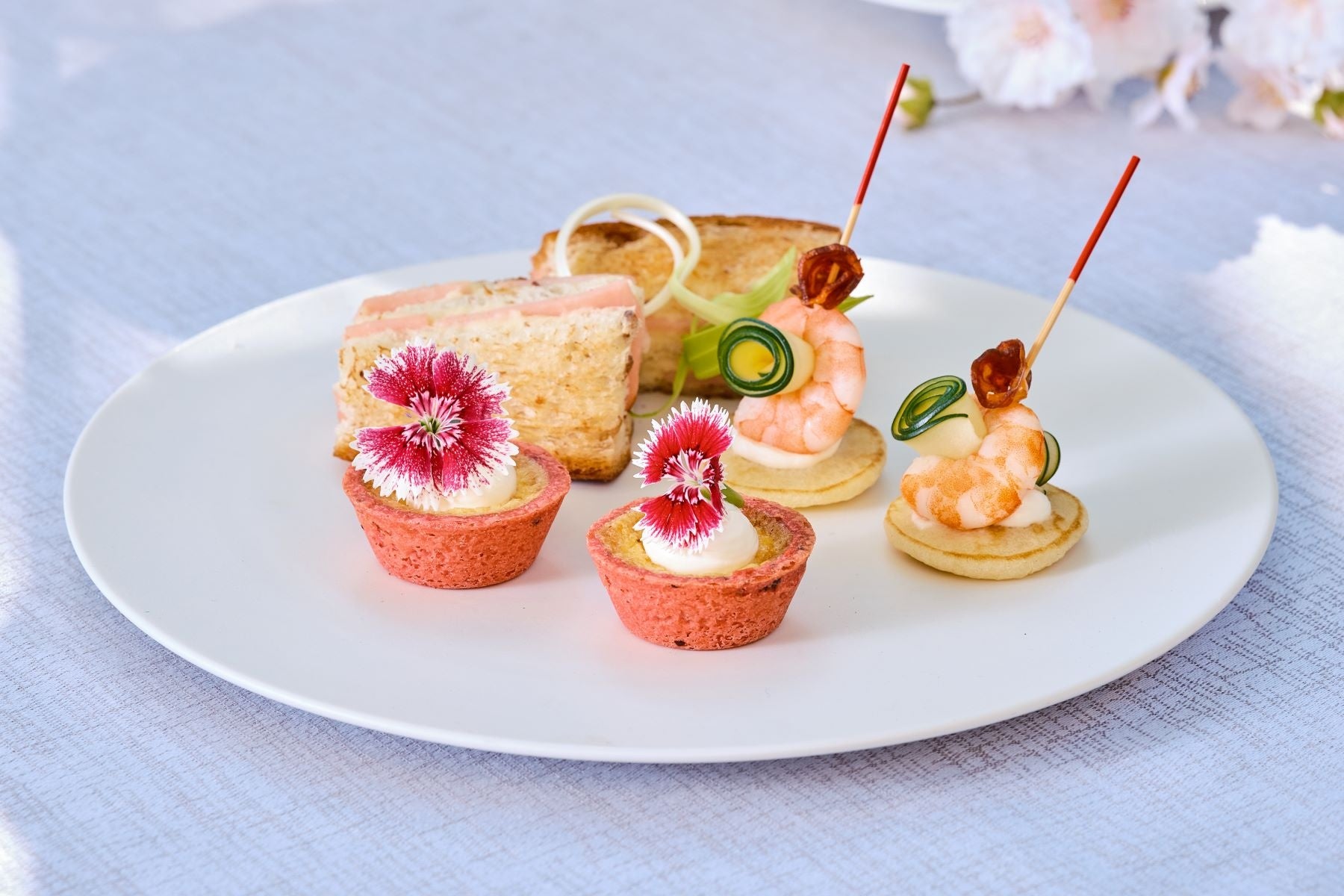今回のグラマシーアフタヌーンティーは、旬の「いちご」、甘く薫る「桜」、ナッツの女王「ピスタチオ」が織りなすお花見気分を味わえるスイーツをご用意。桜クリームとフレッシュいちごで仕上げた見た目も華やかな「桜といちごのヴェリーヌ」、淡いグラデーションが美しい「イタリア産ピスタチオとベルガモットのムース」、桜の風味とヘーゼルナッツの食感を楽しめる「SAKURAオペラ」、甘い香りのスパイスが効いたムースなど、お花見気分を味わえるスイーツ6種類と、特製セイボリーには、ズワイ蟹とスピナッチブレッドのサンドイッチやジャーマンポテトのクロケット&さくらクリーム、新玉葱とビーツのキッシュなど6種類をご堪能いただけます。