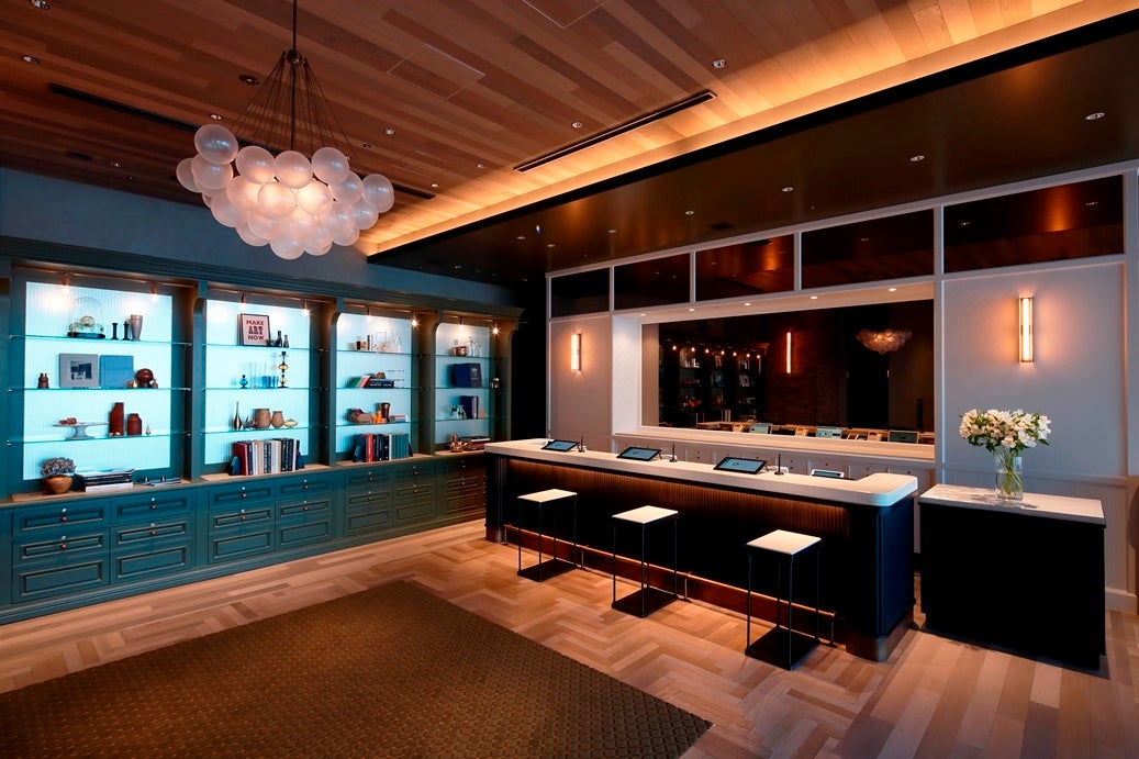 ロビーやゲストラウンジをミモザで飾り、黄色いポケットチーフを着用したスタッフがお出迎えします。