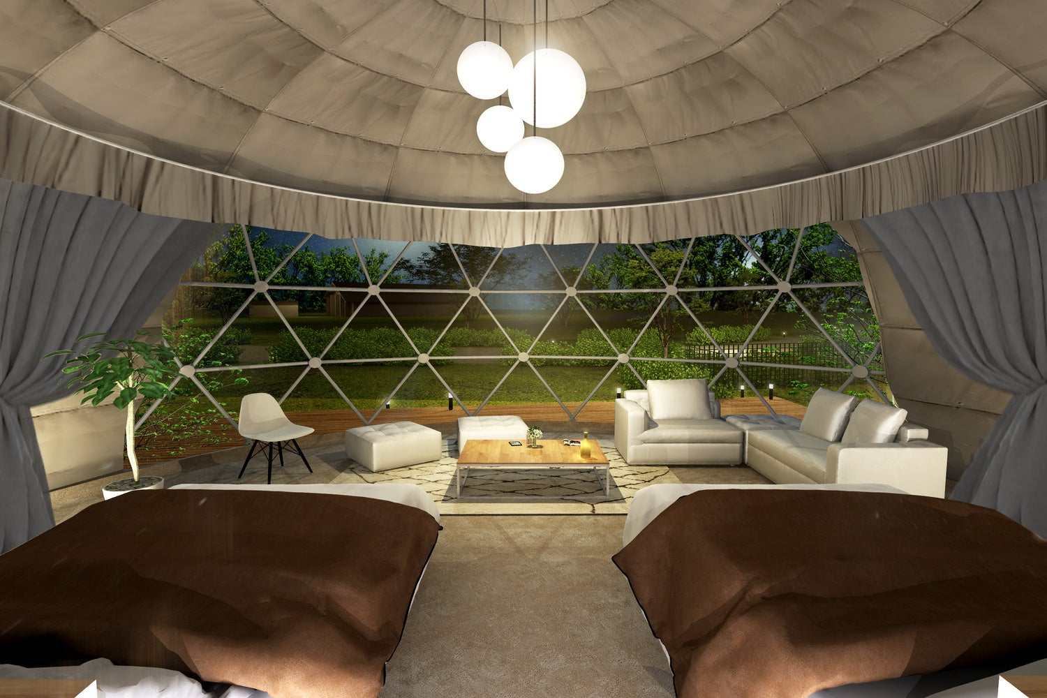 最新のドームテントでは、冷暖房完備で1年を通して快適にお過ごしいただけます。