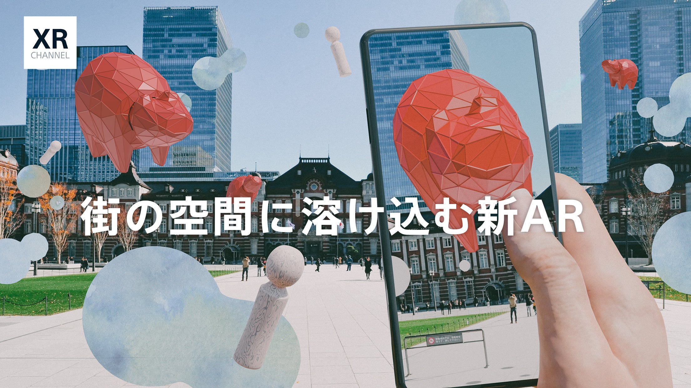 「XR CHANNEL」はSoVeCが開発した、VPS(Visual Positioning System)技術を活用した国内初のロケーションベースARアプリです。スマホのカメラ画像から位置情報を認識するVPS技術で、街の風景とARコンテンツが空間上で連携、作用し合うような新しい体験が楽しめます。