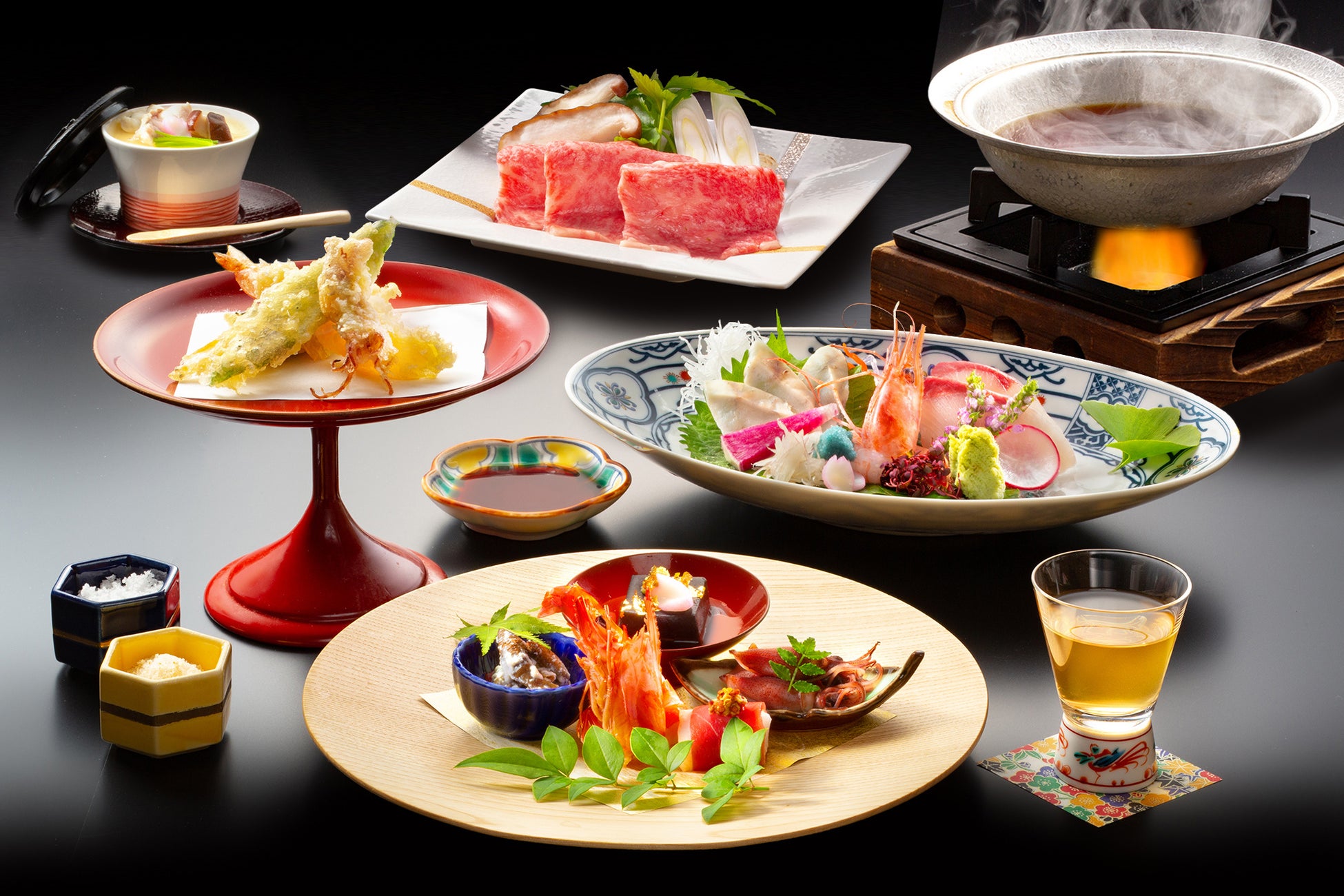ズワイ蟹、のどぐろ、輪島ふぐ、甘海老ほか日本海の海幸、能登牛、加賀野菜、合鴨の治部煮など加賀百万石の郷土料理は、加賀会席と本格的な鉄板焼でどうぞ。そして一日の始まりは、加賀能登朝食と鉄板ブレックファストが贅沢に演出します。