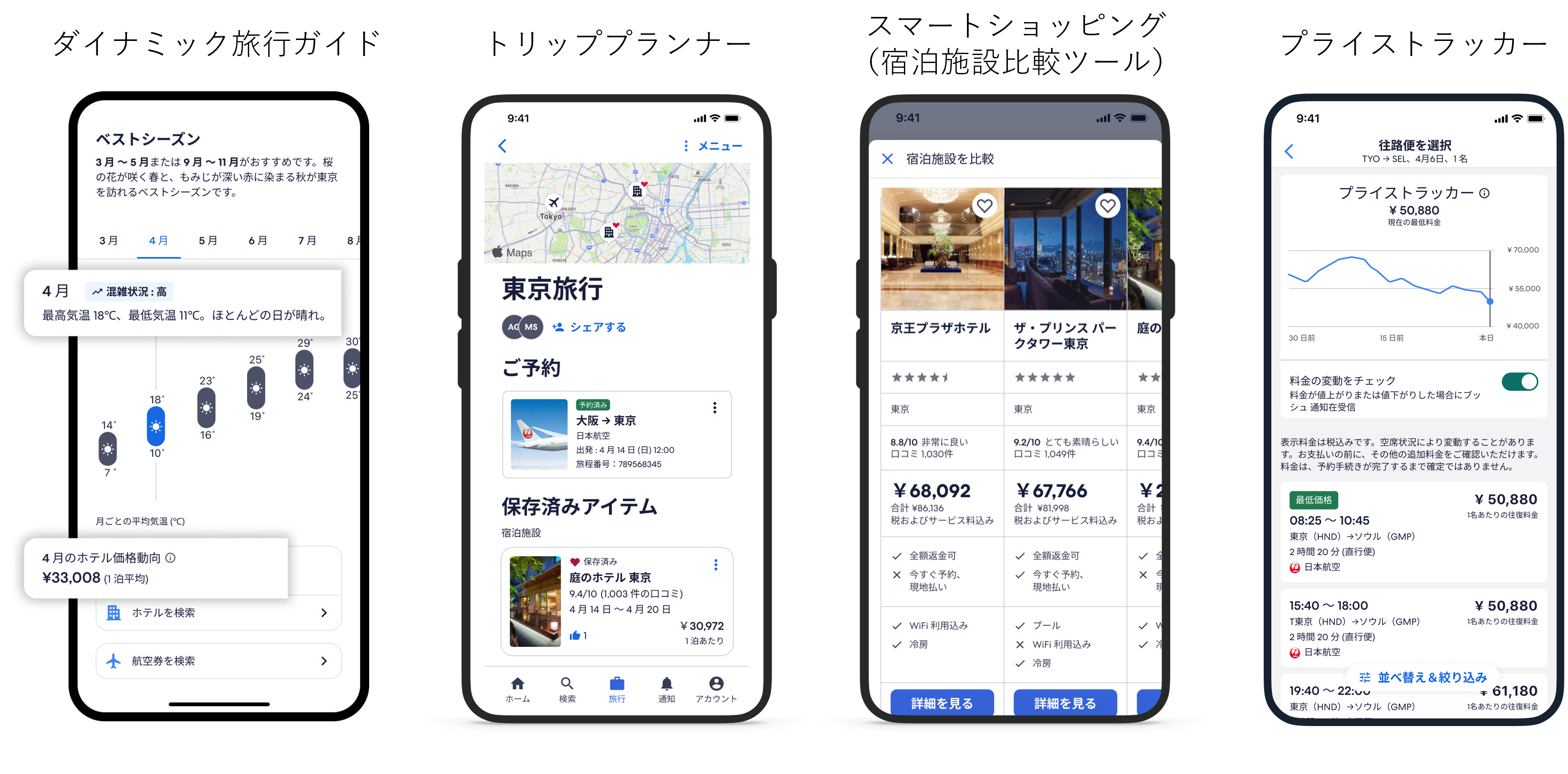 「ダイナミック旅行ガイド」は都市によって旅行に最適な時期や近隣の目的地、アクティビティの情報を提案し、アイデア収集から実際の旅行の実現までをサポートします。