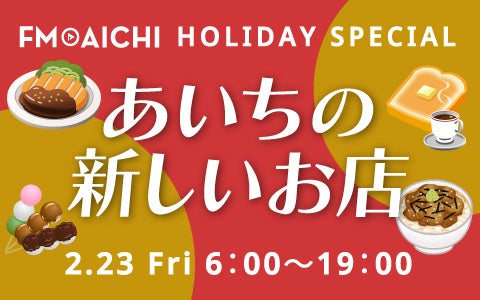 FM AICHI(株式会社エフエム愛知)では2月23日(金・祝)に、1DAY企画「FM AICHI HOLIDAY SPECIAL ~あいちの新しいお店~」をお送りします。