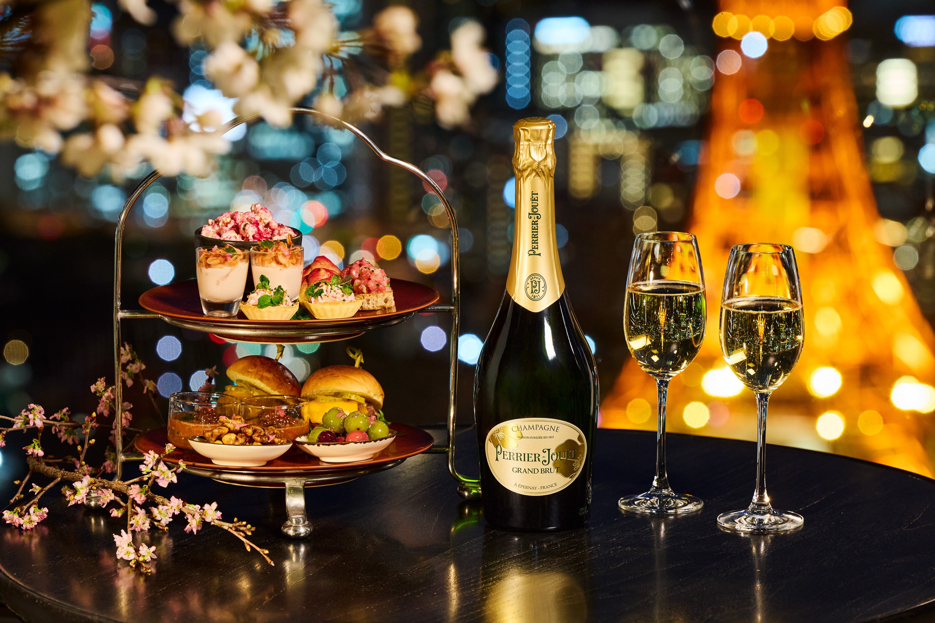 桜の季節、イブニングタイムに地上約250mの高層階からの煌めく夜景とともに夜桜をご堪能いただける「夜桜プレミアムビュープラン」をご用意いたしました。ライトアップされた東京タワーや桜を眺めながら、美酒に合わせてシェフが特別にご用意するカナッペをお楽しみいただけます。桜の塩漬けや桜の葉など桜の風味を感じる素材をふんだんに使用した春の味覚とともに、年に一度の桜を五感でお楽しみいただける特別な機会です。美しい夜景や夜桜とともに、ペリエ ジュエとの相性が格別なシェフ特製のカナッペとのマリアージュをご堪能ください。