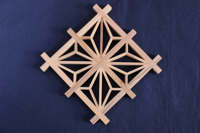 書院造りを基調とする旧岩崎邸庭園内の和館には、菱の意匠が随所に見られます。 床の間の書院欄間に見られる松川菱もそのひとつ。 欄間や障子などの建具の装飾に使われてきた組子細工のコースターの製作体験ができます。 デザインは、伝統的な麻の葉模様で、パーツを糊付けして組んで頂きます。 組子職人による組子のお話を聞き、伝統の技に触れ意味を知りながら、一緒に楽しく製作していきます。