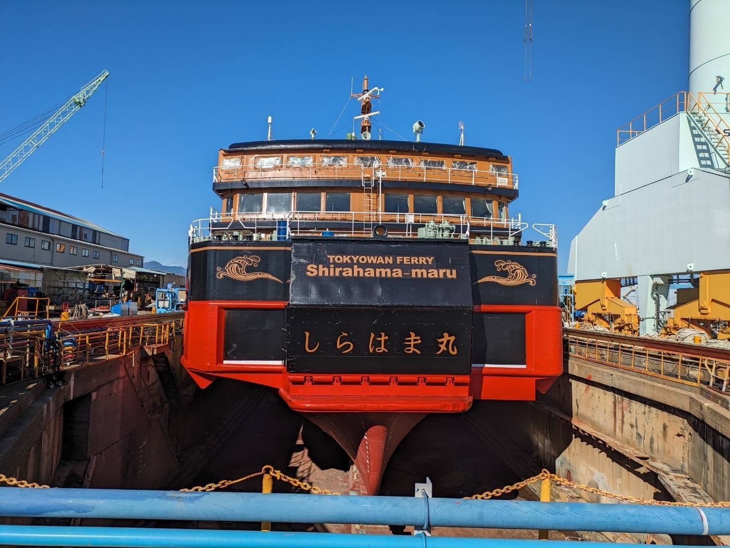 東京湾フェリーでは、来航 170 周年を記念して、所有船舶「しらはま丸」の船体を黒船モチーフにラッピングし、  2023 年 11 月 25 日(土)から運行しております。