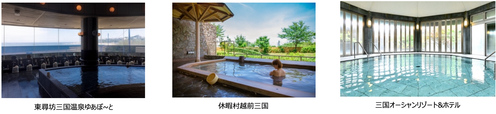 ・対象温泉施設    :東尋坊三国温泉ゆあぽ~と、休暇村越前三国、三国オーシャンリゾート&ホテル