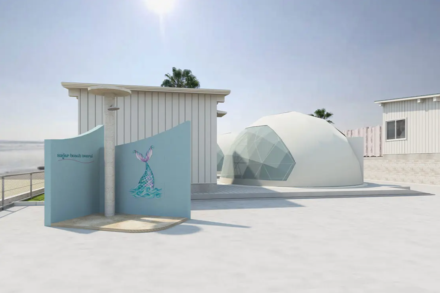 この度、HAMIRUは関東初のビーチグランピング施設となる、全室オーシャンビュー、専用シャワー・トイレ付、オールインクルーシブ付の新施設「Sugar Beach Oarai」を2024年4月1日(月)にオープンいたします。海が見えるジャグジー、愛犬が泊まれる部屋、宿泊者専用のビーチゲートを備えた非日常的な癒し空間を創る施設です。