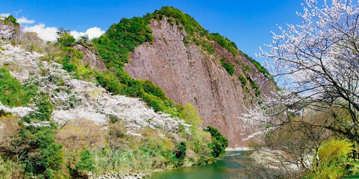 川沿いは桜の名所でもあり、2018年に約100年ぶりに発見された新種の桜「クマノザクラ」を観賞することができます。