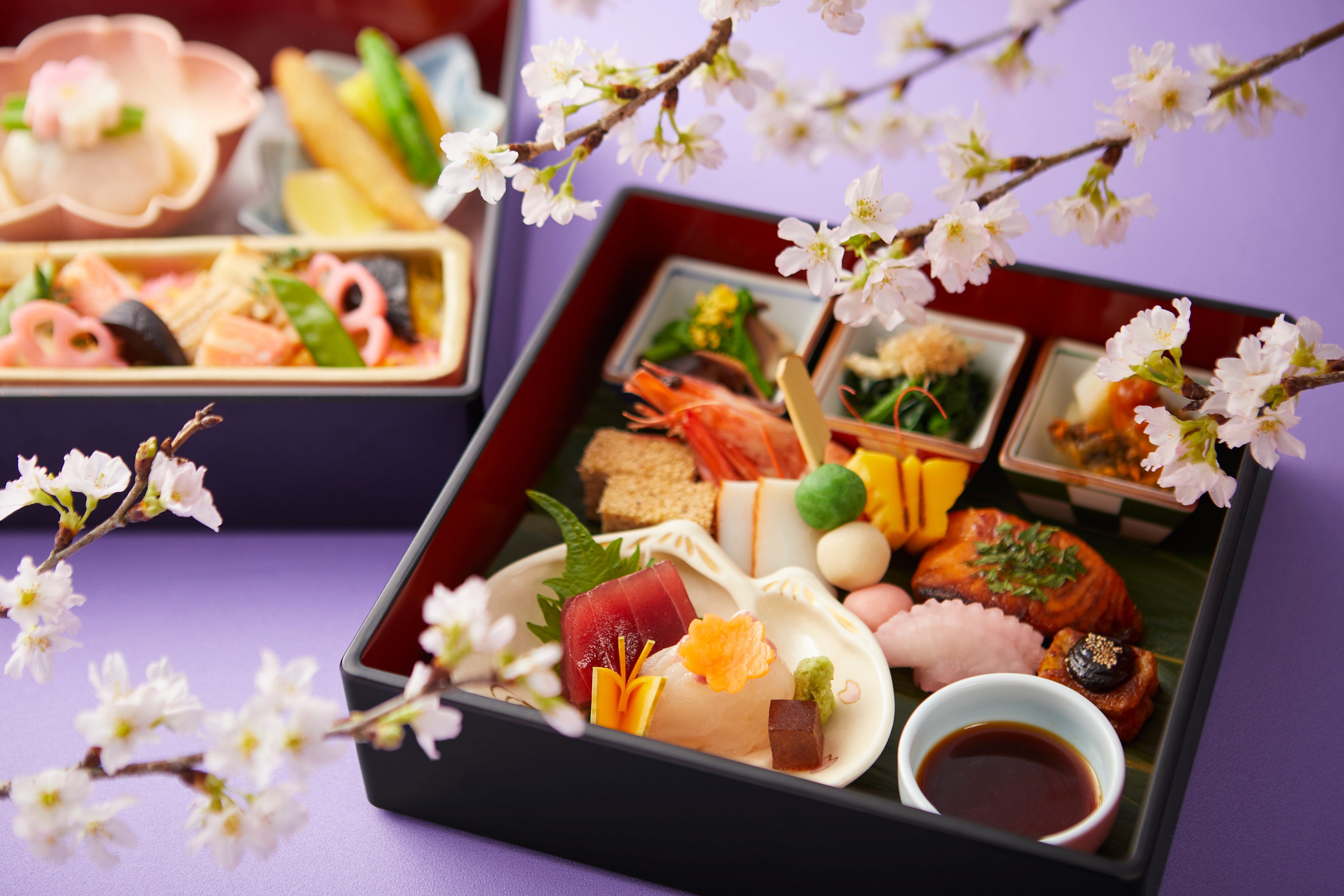 春の陽気に誘われ、庭園でのお花見気分を楽しむよう重箱スタイルでご提供する「さくら御膳」。