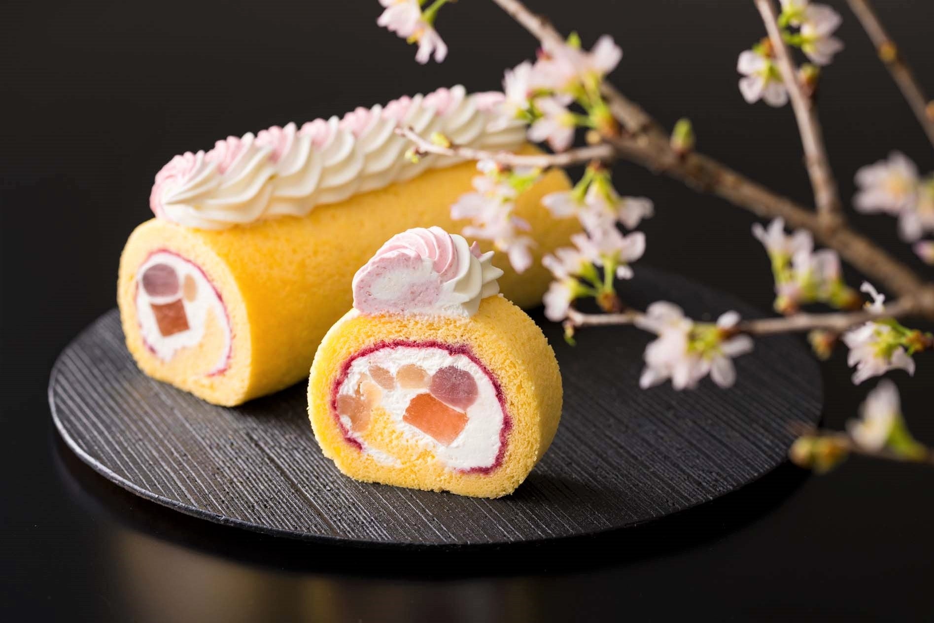 季節の食材を主役にしたロールケーキコレクション。咲き誇る桜をイメージした春色のロールケーキを期間限定で販売します。桜餡、わらび餅、白鹿の子豆、桜風味の生クリームをもっちりとした米粉のスポンジ生地で包み、甘酸っぱいグリオットチェリーのクリームと生クリームを絞りました。食べ進めるたびにさまざまな食感と甘味のハーモニーが楽しめる一品です。
