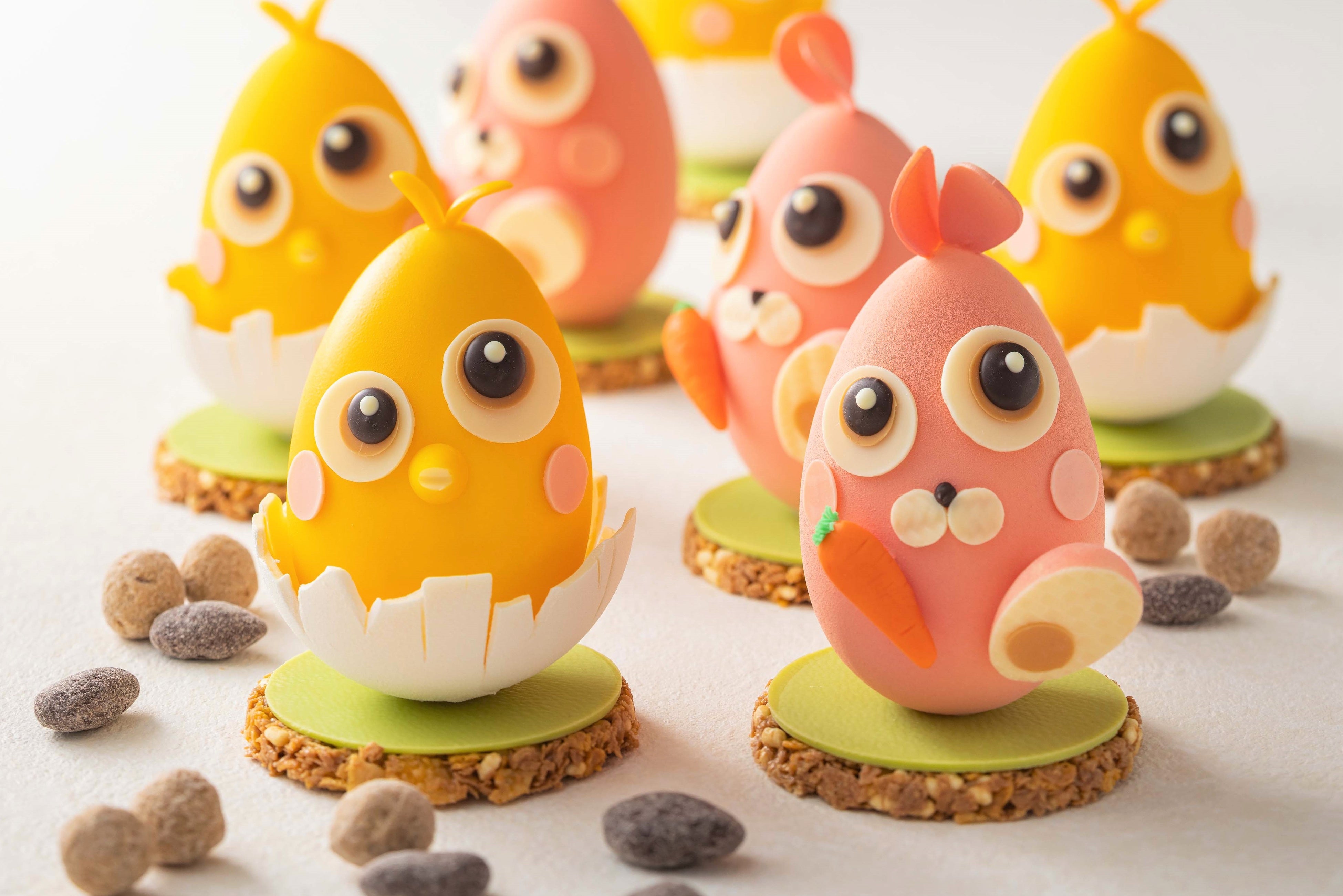 カラフルで表情豊かなデザインが目を引くイースターエッグは、ホワイト、ミルク、ブロンドと3種の上質なチョコレートを使用。エッグの中には、キャラメリゼしチョコレートでコーティングしたマカダミアナッツとアーモンドをしのばせました。