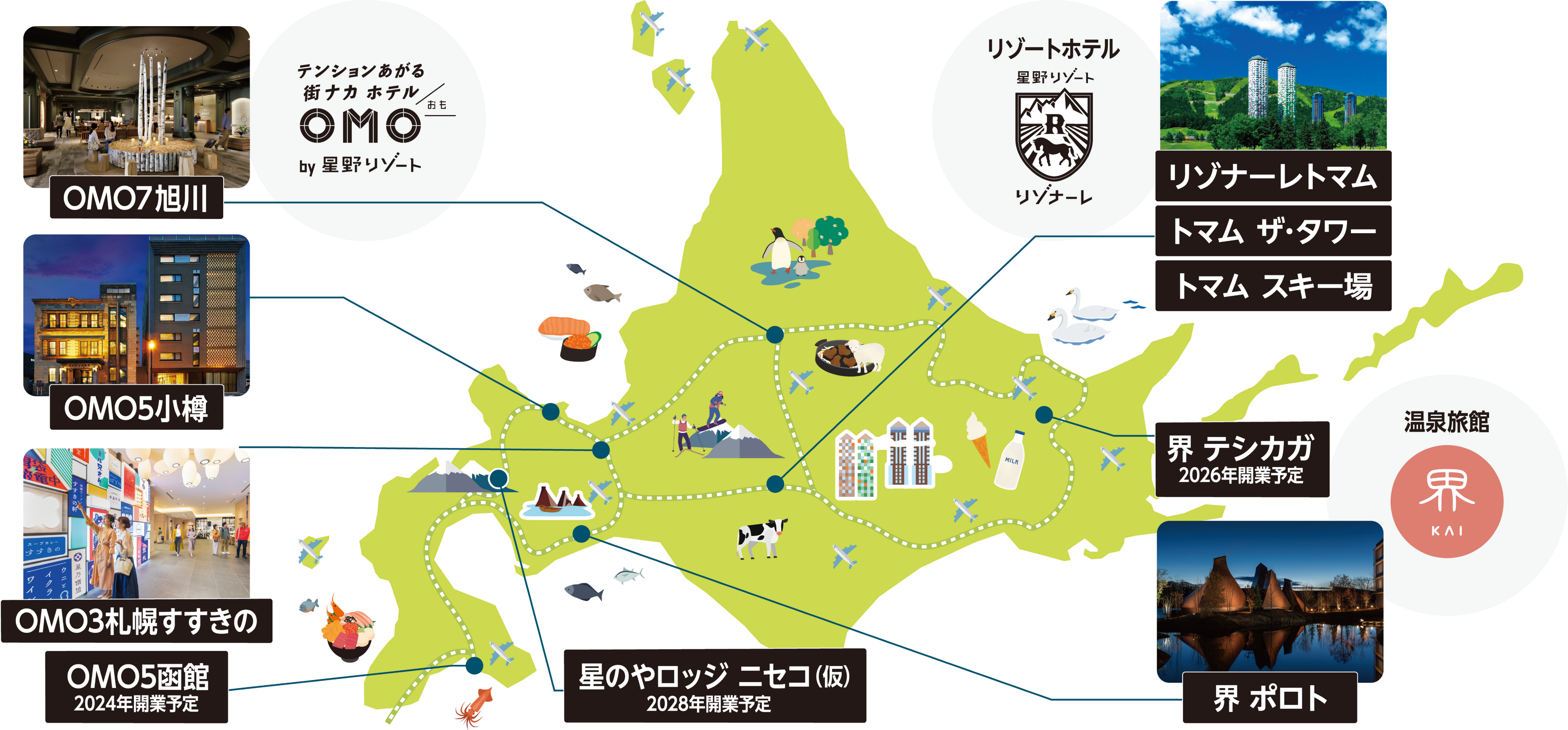 現在、「OMO7旭川」「OMO5小樽」「OMO3札幌すすきの」の3施設を展開しており、函館は北海道内4軒目のOMOブランド施設となる予定です。その他、温泉旅館「界 ポロト」、リゾートホテル「リゾナーレトマム」などを運営しており、都市観光だけでなく、温泉旅行やリゾート滞在など、様々なスタイルの北海道旅を提案しています。