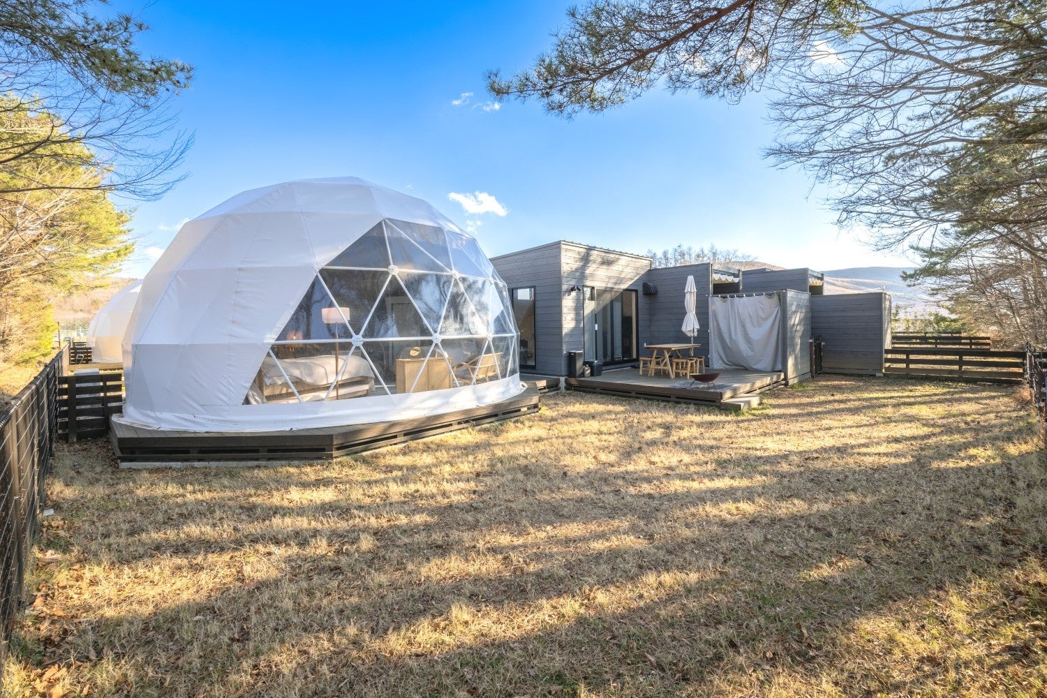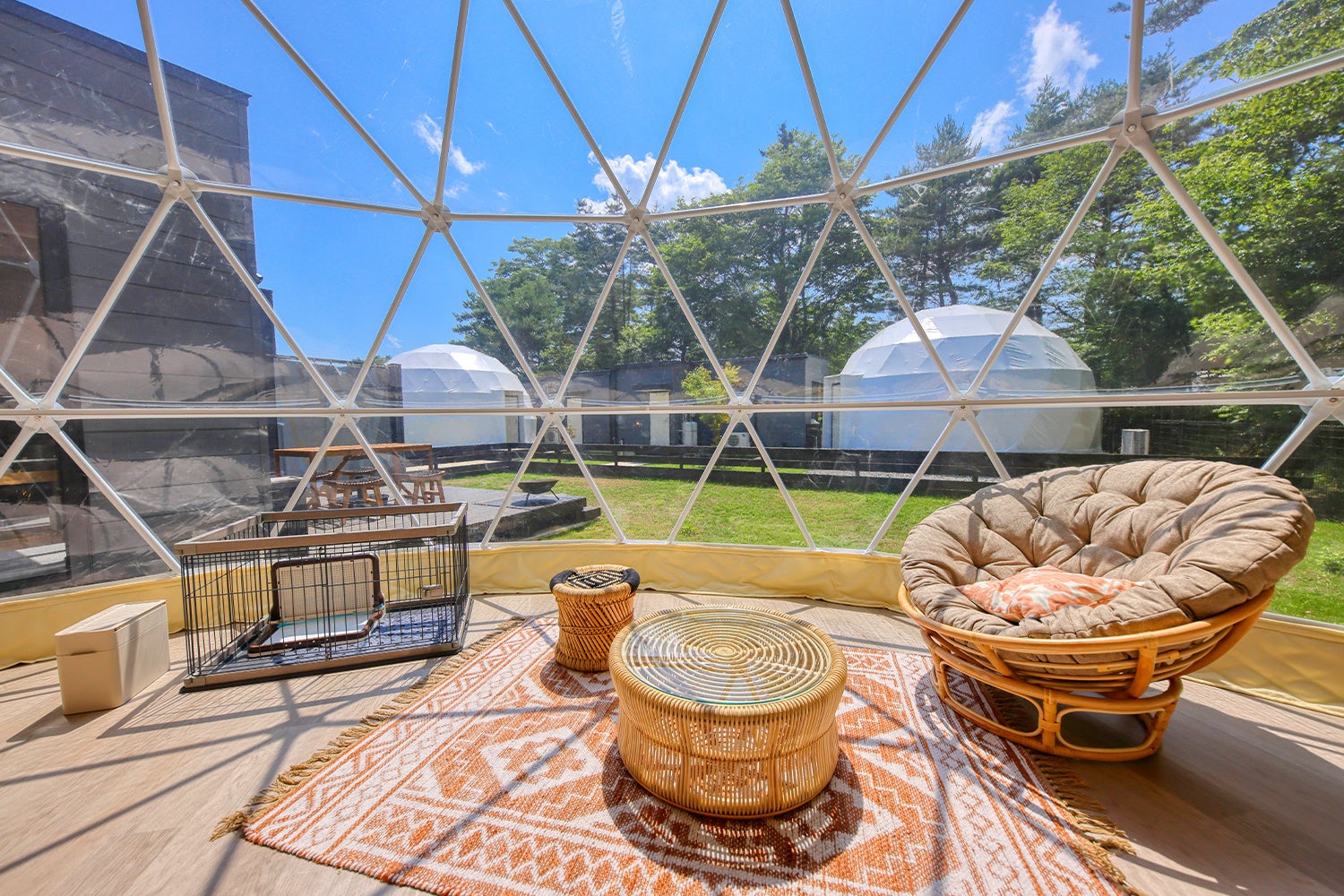 富士山の絶景を望む場所に全7棟のプライベートドームテントを配置。