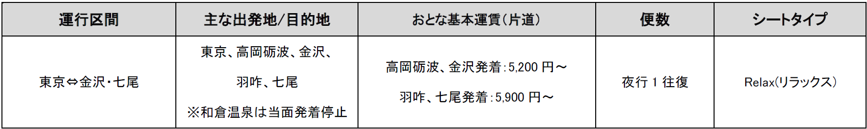 両社は2022年7月に業務提携し、丸一観光が羽咋・和倉温泉・七尾を発着する高速バス「WILLER EXPRESS」を運行してきました。当便は、2024年1月1日に発生した令和6年能登半島地震に伴い一時運行を休止していましたが、このたび約1か月半ぶりに運行を再開し、東京~能登エリアを乗り換えなしで移動いただけるようになります(※2) 。