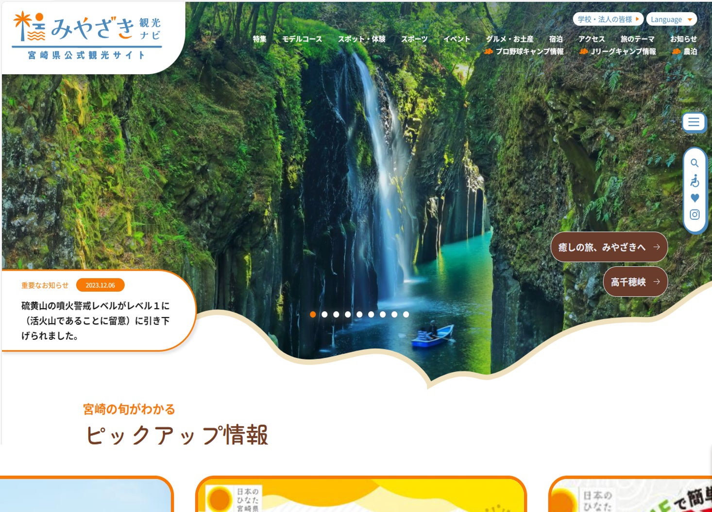 宮崎県内の観光コンテンツ、旬な情報をこれまで以上に魅力的に発信していきますので、是非ご覧ください。