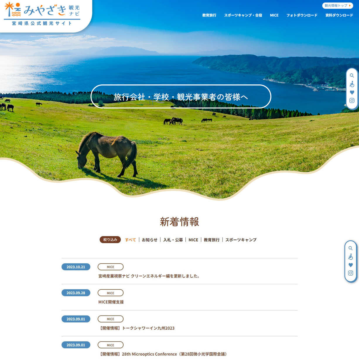 宮崎県内の観光コンテンツ、旬な情報をこれまで以上に魅力的に発信していきますので、是非ご覧ください。