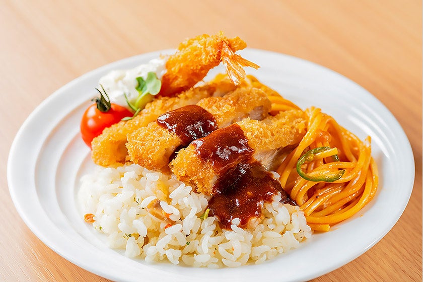 長崎のご当地グルメ、トルコライス。チキンライスやとんかつ、ナポリタンをお客様にご自由に盛り付けていただきます。ボリュームたっぷり、B級グルメならではの美味しさをお楽しみください。