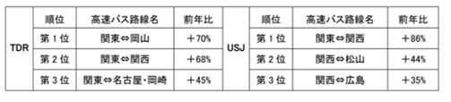 ※:「東京ディズニーリゾート®」は「東京ディズニーランド・バス・ターミナル・ウエスト」および「東京ディズニーシー・バス・ターミナル・サウス」を発着する予約、「ユニバーサル・スタジオ・ジャパン」は「ユニバーサル・スタジオ・ジャパン交通広場」を発着する予約を集計しています。