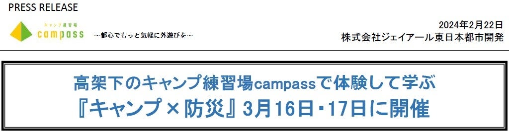 「もしも」の事態に備える体験型のイベントをキャンプ練習場campassで実施いたします。
