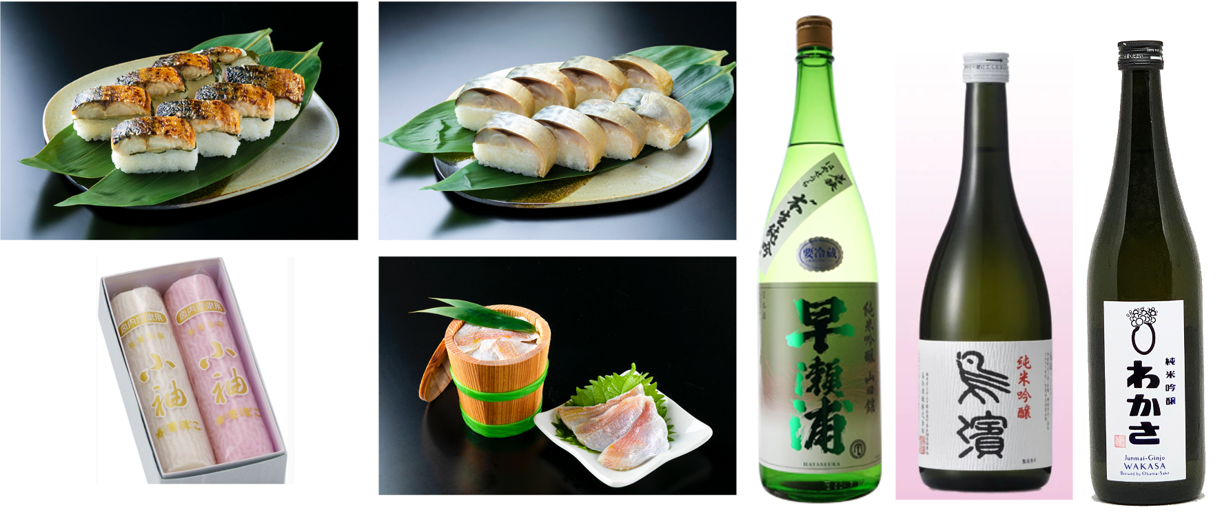 フード :若狭小浜の小鯛のささ漬 / かまぼこ /鯖寿司 / こめかま