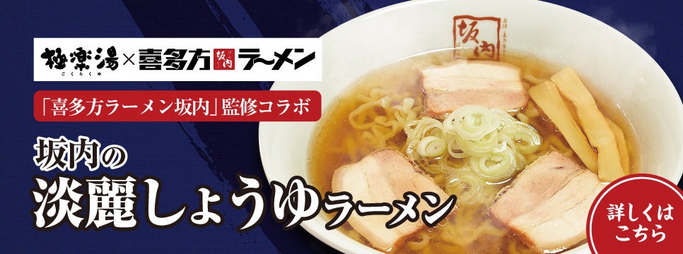 株式会社極楽湯(本社:東京都千代⽥区、代表取締役社⻑:新川 隆丈)は2024年2月27日(火)から極楽湯・RAKU SPAグループ10店舗で、株式会社麺食(本社:東京都品川区、代表取締役社長:中原 誠)が運営する喜多方ラーメン坂内監修の「坂内の淡麗しょうゆラーメン」を販売いたします。