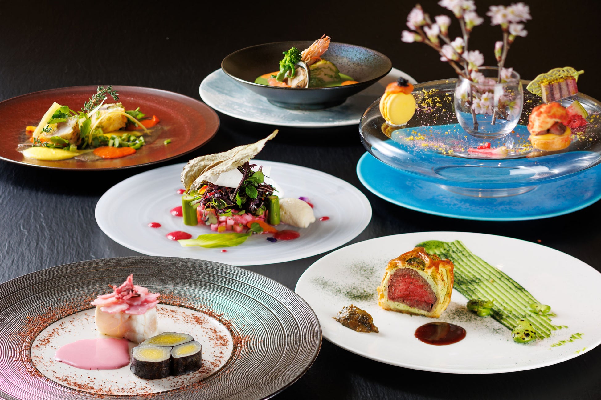 心地よい春の夜、目の前に広がる夜景を眺めながら、日本が誇る和牛と春の恵みで華やかに彩られたディナーコースをお召し上がりください。