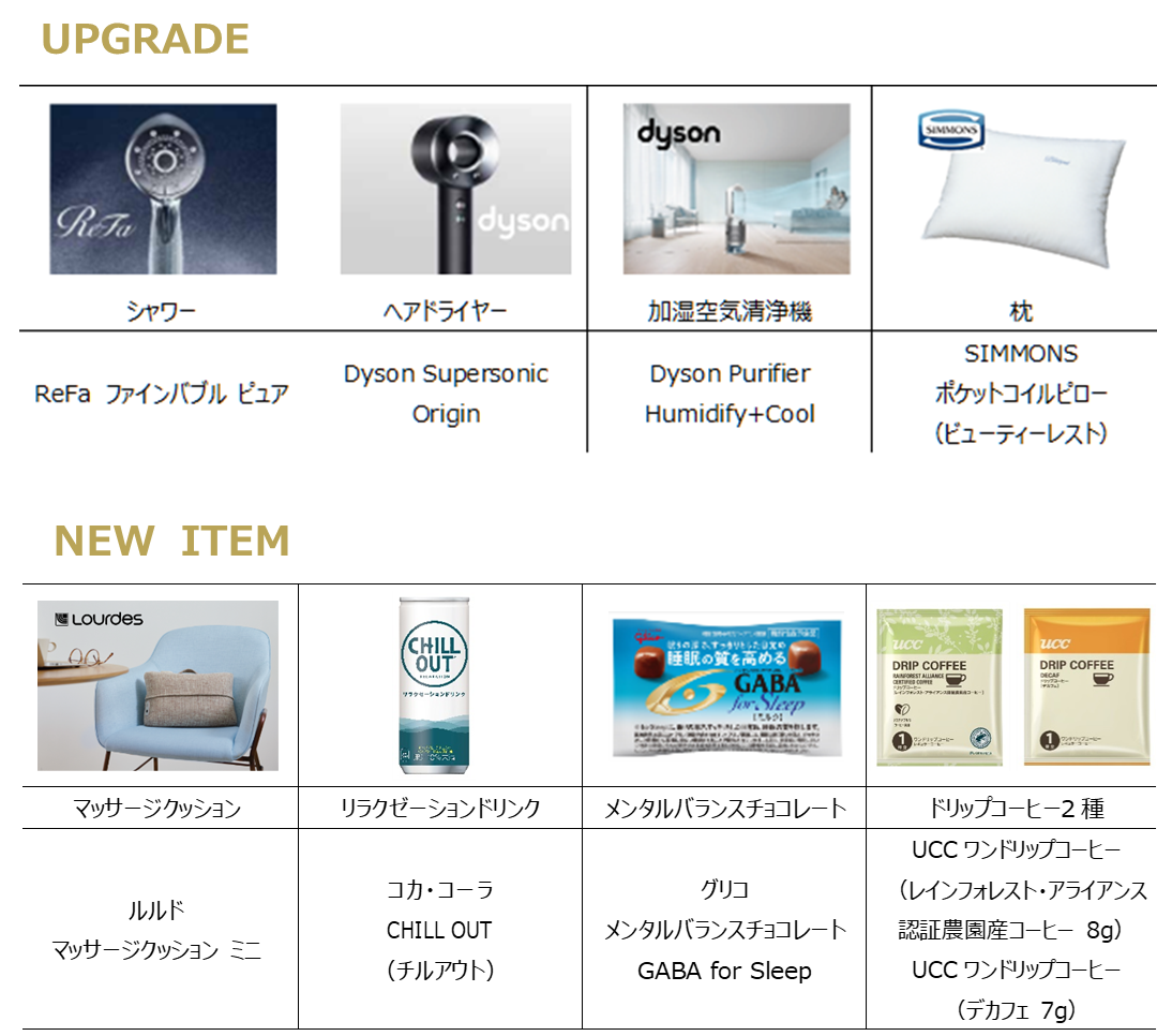 プレミアブランドのテーマである“ひとつ上の上質に癒され心と身体が豊かに満たされるホテル。”を体現する、以下の備品のアップグレードと新しくリラックスアイテムを全室に導入します。