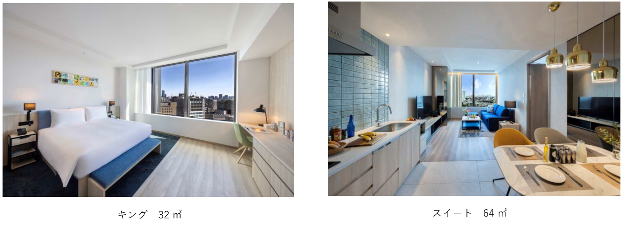 本施設は、スイート18室を含む126室のアパートメントタイプ。32㎡以上の広々とした快適な客室には、充実したキッチン・洗濯乾燥機・オーブンレンジ・55インチ以上のTV・冷凍冷蔵庫・バスタブを完備します。暮らすようにご滞在頂くことができる、渋谷の中心にあるお客様のもう一つの“ハウス”を目指します。