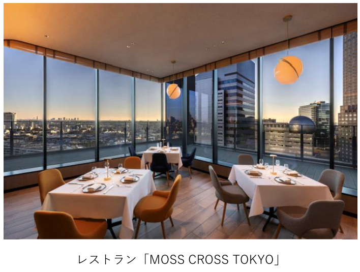 本施設のメインダイニングとして、モダンジャパニーズフレンチ「MOSS CROSS TOKYO」が出店し、宿泊ゲストの朝食をブッフェスタイルで提供するほか、個室も設けた店内ではランチ&ディナータイムに宿泊ゲスト以外のお客様にも、開放的な眺望を目前にコースを中心とした料理&お酒をゆっくりとお楽しみいただけます。 隔たりのないワンフロアはウェディングや企業イベントなどの貸切利用にも対応し、大小2つの個室も完備しております。