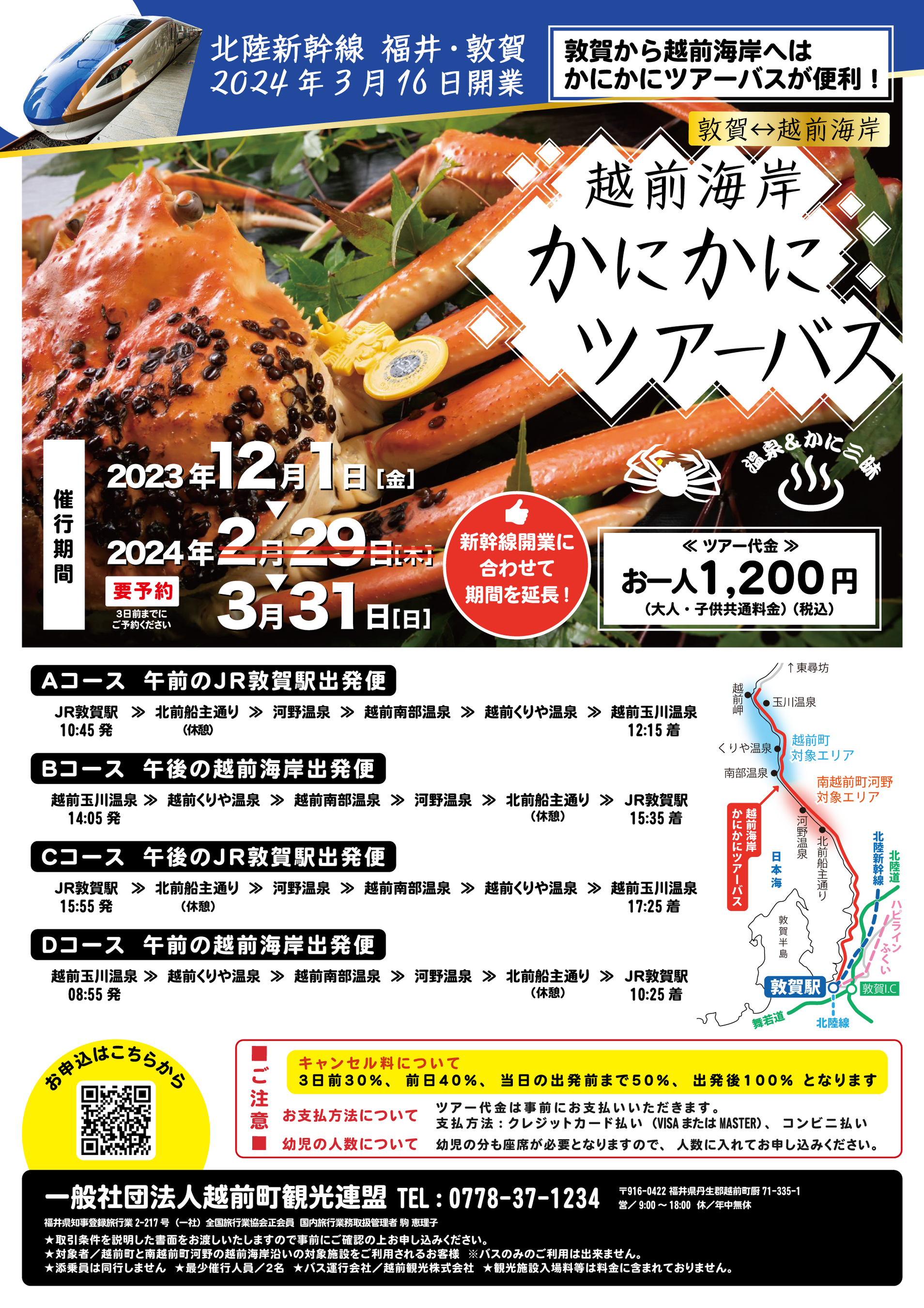 【JR敦賀駅↔越前海岸】越前海岸かにかにツアーバス【3月まで延長!】