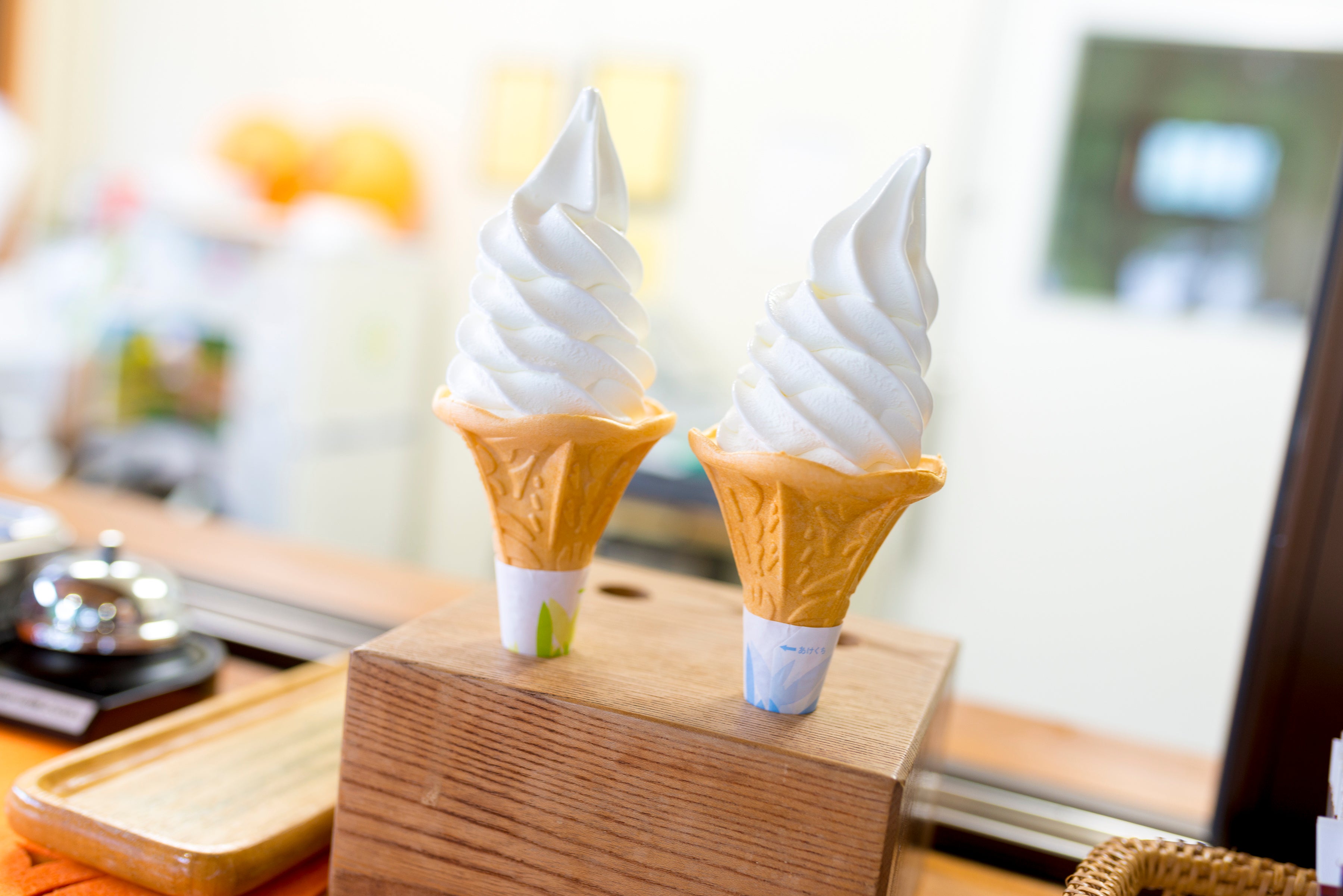 グルメクーポンの利用は「道の駅 信越さかえ」のさかえソフトがおすすめ。季節によって変わる自家製ソースのトッピングが美味しいです。