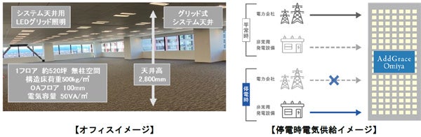 また、BCP対策として大地震や強風による揺れを想定し、荷物や設備のダメージを最小限に抑え、建物の機能を維持できる制震構造を採用したため、建物の揺れを最小限に抑えることができます。あわせて、停電時にも電力供給を確保する給電システムや業務継続のライフラインである非常用発電機を備えているため、大規模災害発生時でも施設内へ約72時間の電力供給が可能です。