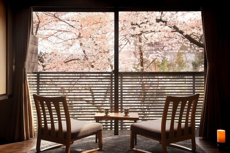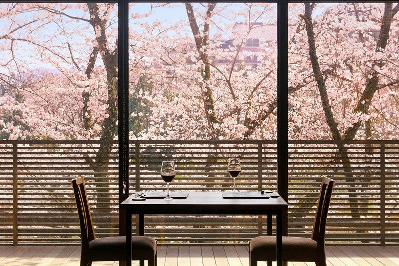 レストラン「森の音dining」からは桜をご覧いただけます。お花見をしながら春のお料理をお愉しみください。