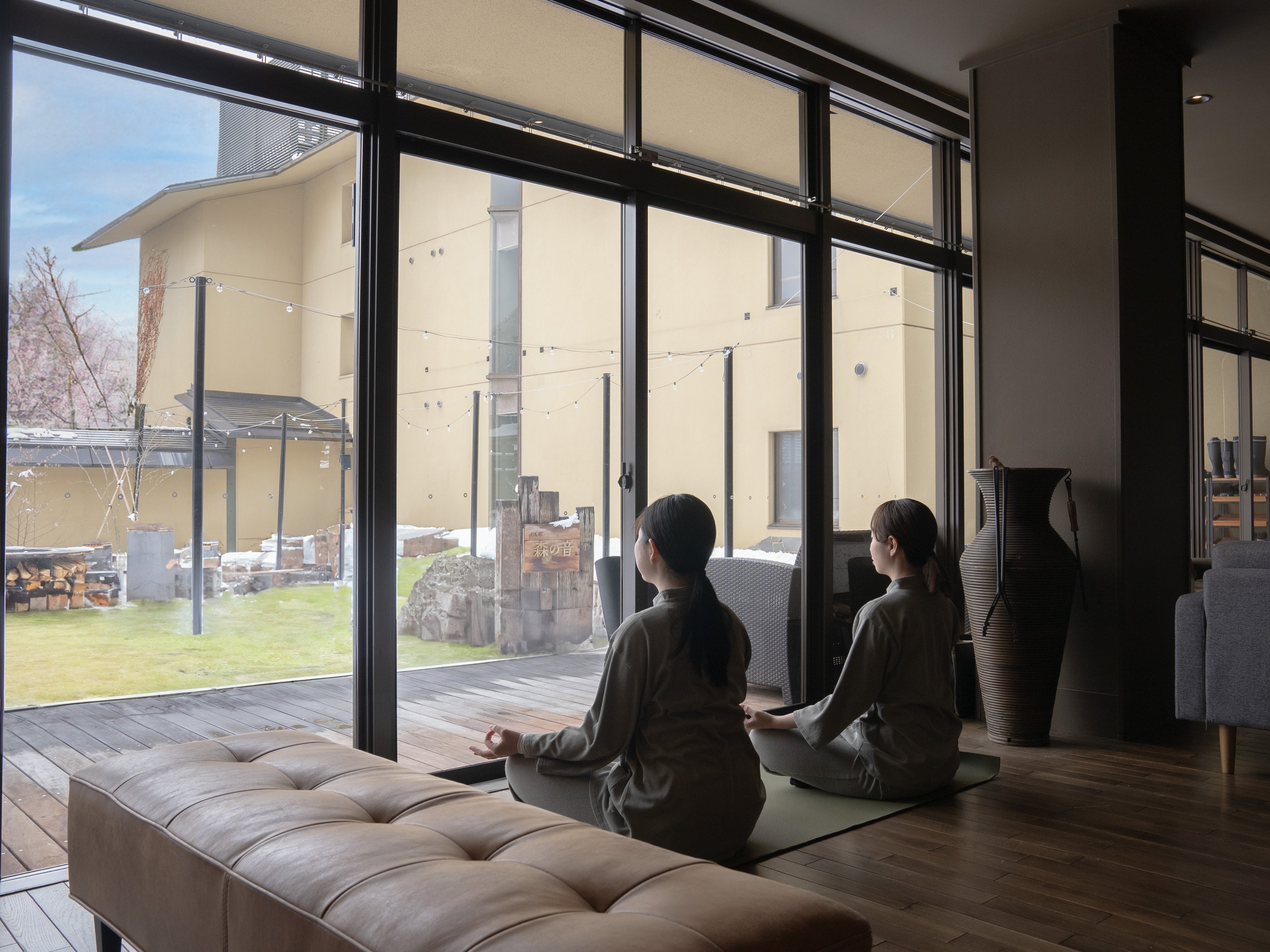 森の音gardenに出ると、春の森の香をお愉しみいただけます。春風を感じながら、ヨガやファイヤーピットでのアクティビティもおすすめです。