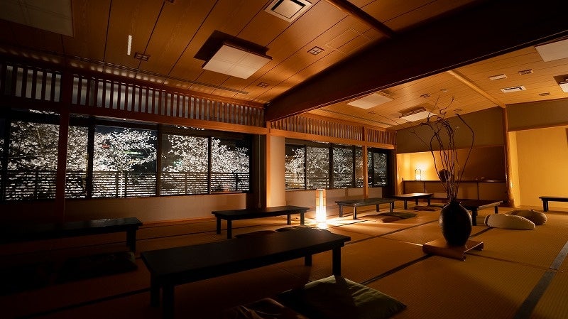桜が咲く期間には、客室やレストランから窓一面に広がる桜をご覧いただけます。当館2階の「お花見gallery」では「お花見焼き団子」を提供いたします。