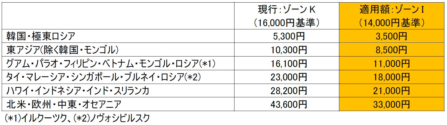 運賃額 : 日本発旅程 (金額はお一人さま一区間片道あたり)