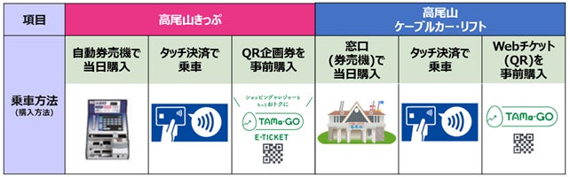 現在、各駅自動券売機で発売している「高尾山きっぷ」を、クレジットカード等やスマートフォンなど様々な手段でご利用いただけるようにすることで、お客さまへの利用動機の促進や沿線の回遊性向上による新たな移動需要の創出を目指します。